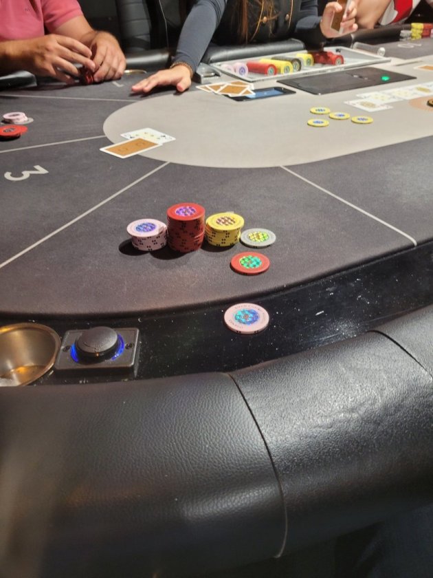Vissa dealers kunde inte ett ord engelska, så det blev lite spännande och vissa spelare försökte dra nytta av det (slängde ut en €50 marker och sa €12), så man fick fråga lite då och då. En spelare var någolunda bra på engelska så han svarade när jag frågade :)