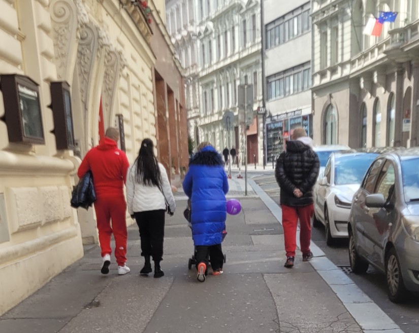På vägen upp lär jag mig, med minnet från en rödkläd kille från gårdagen, att om man ska passa in här, då är det röd träningsoverall som gäller...