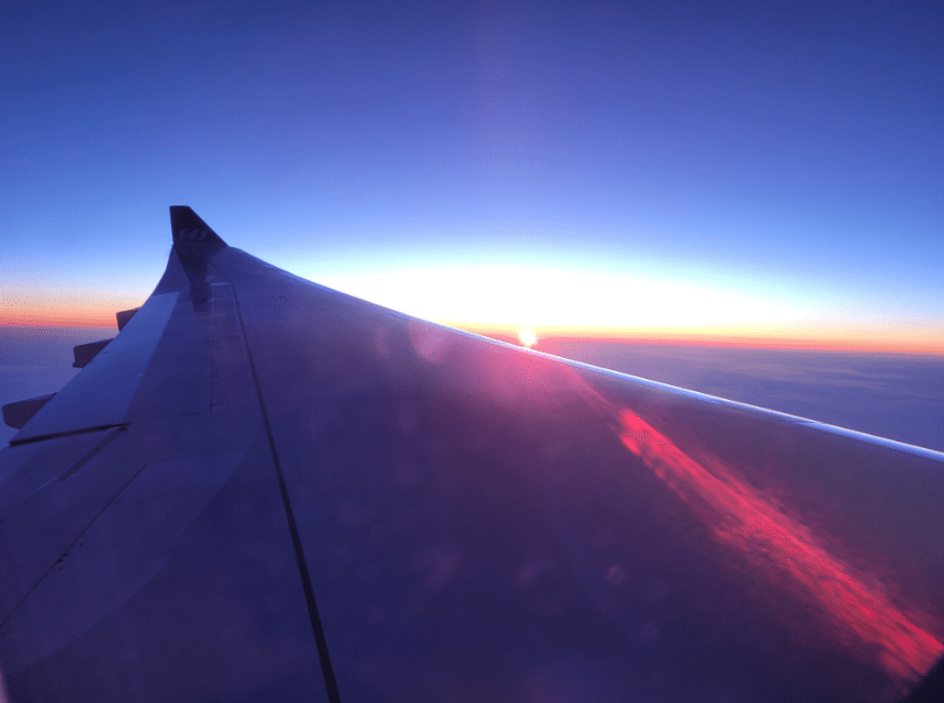 Nästa plan lyfter i tid, och vi tar oss över sjön till USA. Vi lämnar Dansk mark ca 09.45 och flyger ikapp natten och får vara med om en till soluppgång som dokumenteras enligt nedan bild: