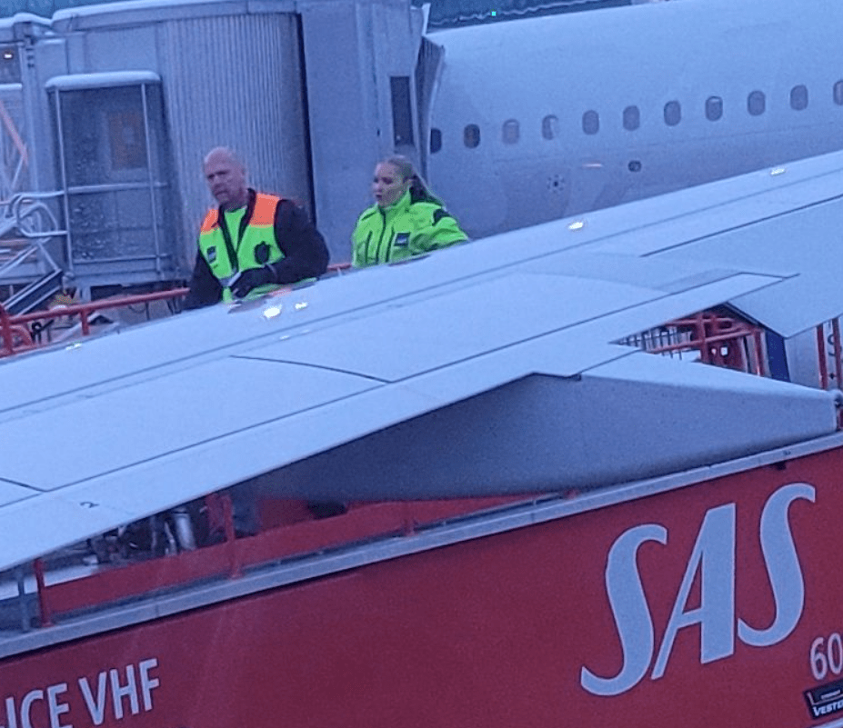 Den som avisar planet tycker sig se en skada på vingen och tekniker rings in.