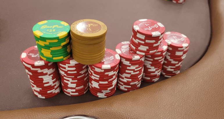 Nedan en bild på lite pokermarker från vår session pmed blinds på 2-3.